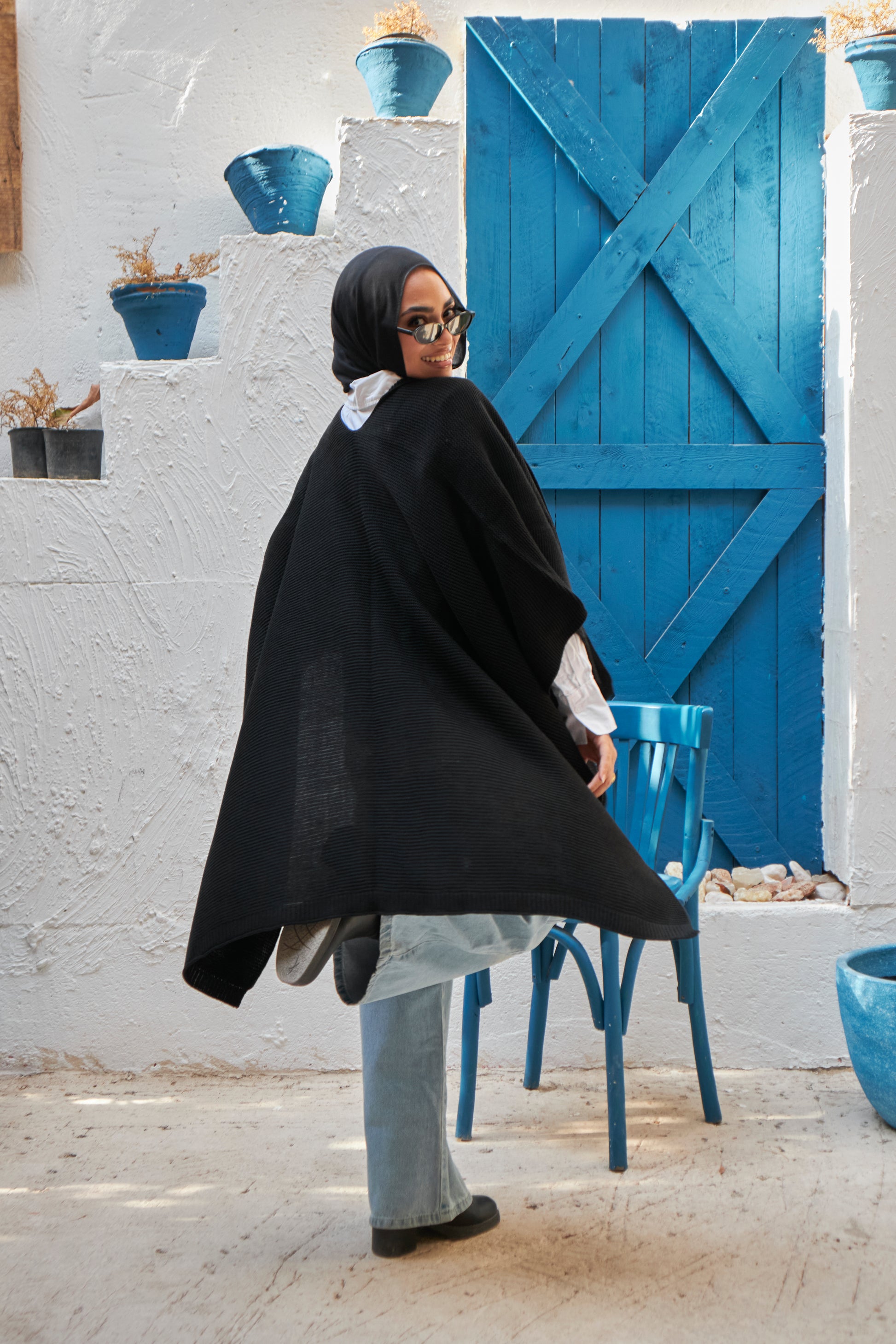 Soft, fluffy tricot poncho with a roomy, comfortable fit and elegant detailing. Perfect for casual occasions, combining warmth, comfort, and effortless style